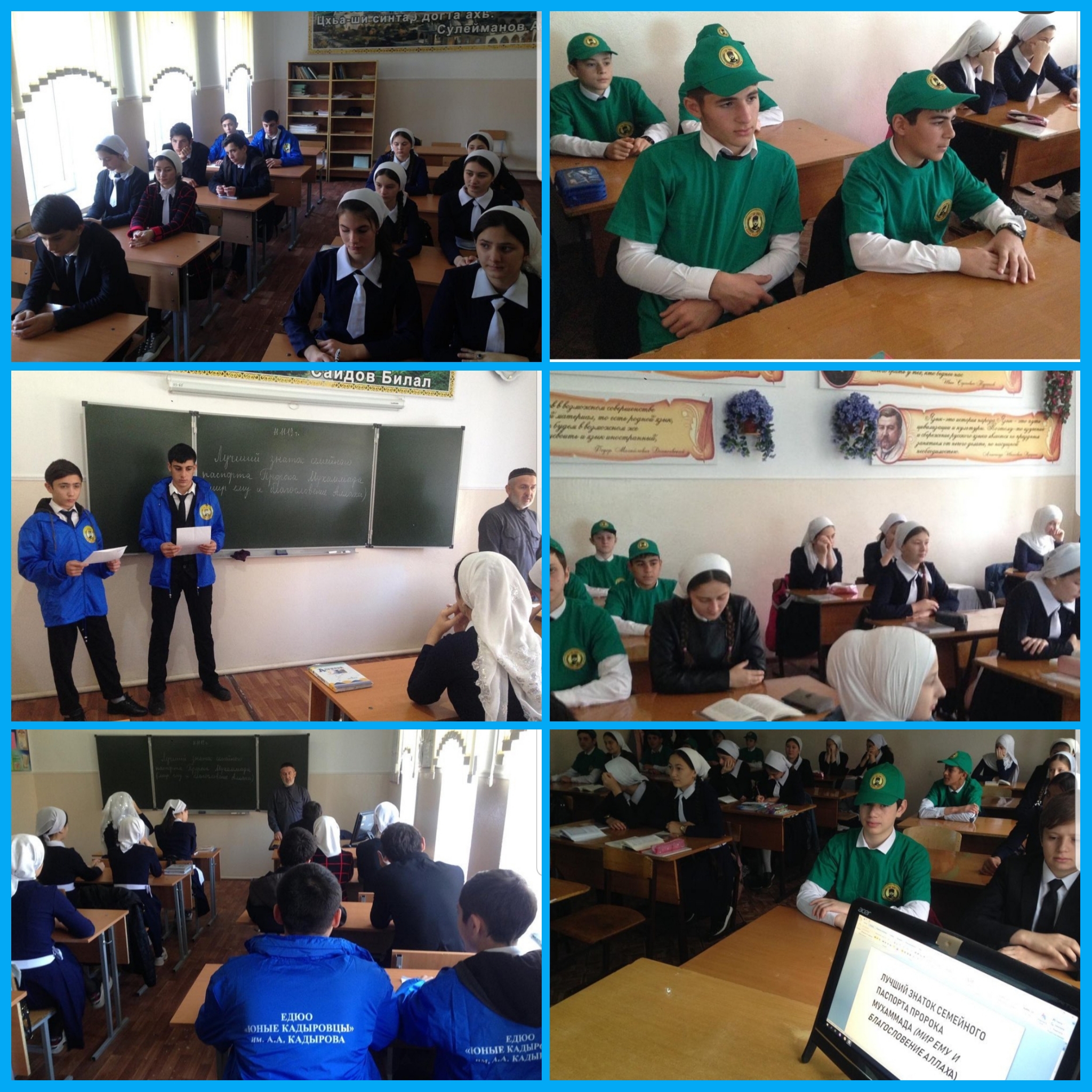 Жизнь Пророка Мухаммада (да благословит его Аллах и приветствует) олицетворяет доброту, милосердие, благой нрав, является примером подражания всей уммы. В целях выявления лучшего знатока семейного паспорта Пророка Мухаммада (мир ему и благословение Аллаха) педагогом по ДНВ Гадаевым А.С. и активистами ЕДЮО "Юные Кадыровцы" МБОУ "СОШ 2с. Алхазурово" проведены беседы и викторина "Лучший знаток семейного паспорта Пророка Мухаммада (мир ему и благословение Аллаха)".