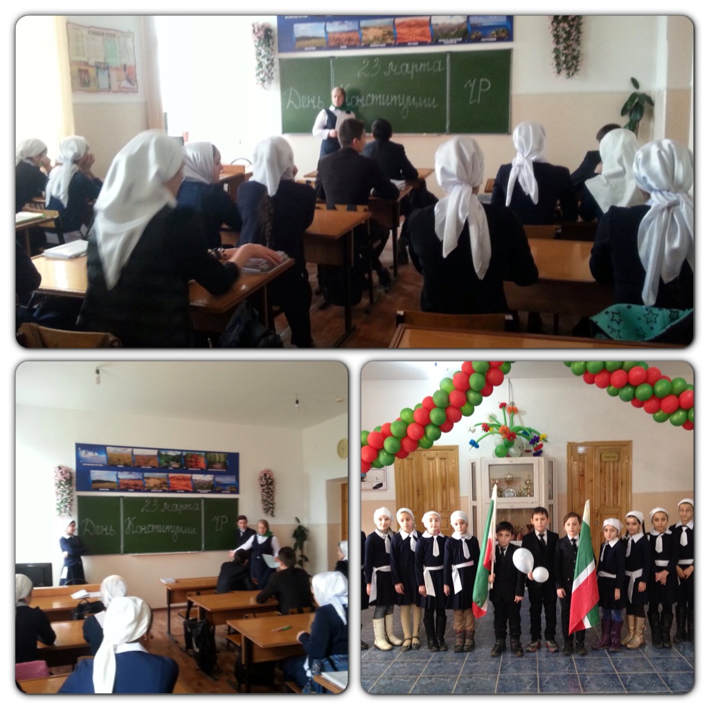 22.03.2016В 9-11 классах были проведены беседы о Конституции Чеченской Республики зам. дир. по УВР Газиевой Р.М., учителем географии Арипхановой Т.А., ученицей 9Б класса Сембиевой Хедой. А также администрация и работники школы, приняли участие в митинге ко Дню Конституции.