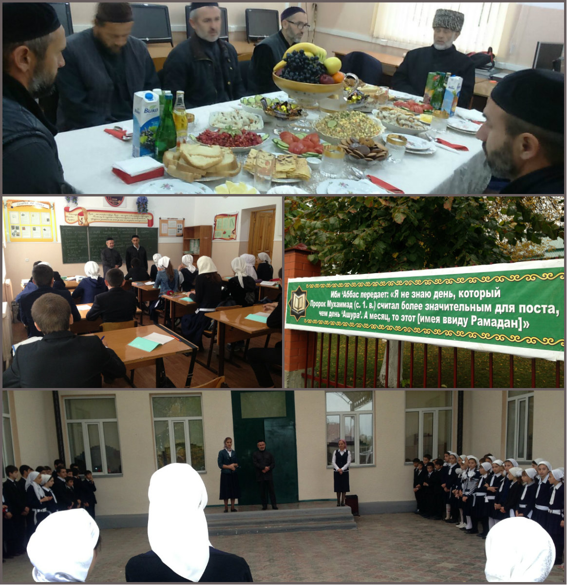 В целях духовно–нравственного воспитания учащихся, а также приобщения их к почитанию священных дней, отмечающих как День Ашуры, в школе были проведены следующие мероприятия: тематическое оформление, проведены беседы с участием имама мечети с. Алхазурово Гадаева А. С., 10.10.16 г. в школе был прочитан мовлид – священная молитва, - которая обязательна и свята во всех мусульманских семьях.
