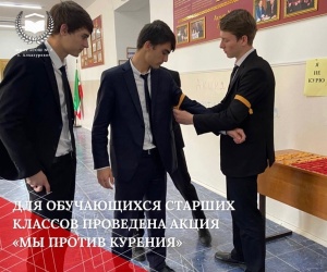 В рамках реализации плана мероприятий социальный педагог Зубайраева Ф.Б. провела акцию «Мы против курения» для обучающихся старших классов.