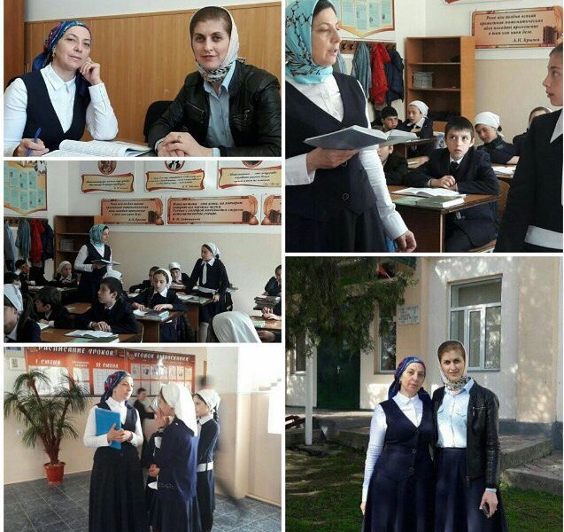 13.04.2017"УЧИТЕЛЬ! ПЕРЕД ИМЕНЕМ ТВОИМ ПОЗВОЛЬ СМИРЕННО ПРЕКЛОНИТЬ КОЛЕНИ!» (Н.А.НЕКРАСОВ) Уже 30 лет работает учителем чеченского языка и литературы в СОШ №2 с. Алхазурово Магомадова Банат Ибрагимовна – душа школы, друг, наставник и опора для детей и коллектива, эталон чеченской женщины. Вся ее жизнь отдана школе. Успех деятельности обусловлен ее постоянным творческим поиском, целеустремленностью, стремлением к самосовершенствованию. Высокую научно-методическую подготовку учителю обеспечивают самообразовательная работа, повышение квалификации на курсах, участие в работе районного методического объединения учителей чеченского языка и литературы, районных и областных научно — практических конференциях педагогов, различных конкурсах. Хороший учитель воспитывает учеников личным примером. Всегда аккуратная, строгая, но добрая и справедливая Банат Ибрагимовна стала примером для подражания не только для учеников, но и для коллектива. В классах, где она преподает, ученики выделяются воспитанностью, прилежностью. Банат воспитывает их в духе чеченского менталитета, прививая любовь к чеченскому языку, культуре, традициям, обычаям нашего народа. Воспитанники Банат Ибрагимовны успешно участвуют в районных и республиканских олимпиадах, литературных праздниках, конкурсах. Мы благодарны судьбе, что нам пришлось работать с таким замечательным педагогом и человеком. Тхан оьзда, хьекъале, лераме Банат Ибрагимовна! Школан са ду хьо, Берийн иман ду хьо, Тхуна дика накъост а, Г1ортор а ю хьо! 30 шо сов зама ю Магомадова Банат Ибрагимовна Олхазар-К1отарарчу № 2 йолчу школехь нохчийн меттан а, литературин а хьехархо йолу . Шен дерриг дахар школана д1аделла цо. Балха т1ехь цуьнан кхиамаш хиларан бахьана ду, иза даима лехамехь хилар. Цо урокаш луш йолчу классашкара бераш къаьсташ хуьлу дешарца а, г1иллакхца а, иманца а, леларца а. Ткъа цуьнан уроке нисвелча, иза д1аяларна кхоьруш, зама сацахьара олий, вуьссу. Банатас нохчийн мотт буьйцуш, цкъа а к1ордор дацара ладег1а. Хьекъалечу дешнашца, эсалчу озаца кхуллу цо берийн дегнашкахь вайн матте а, литературе а безам. Тхан тахана майрра ала йиш ю, нохчийн мотт лаккхарчу т1ег1ана т1е тхан школехь баьккхинарг хьо ю!