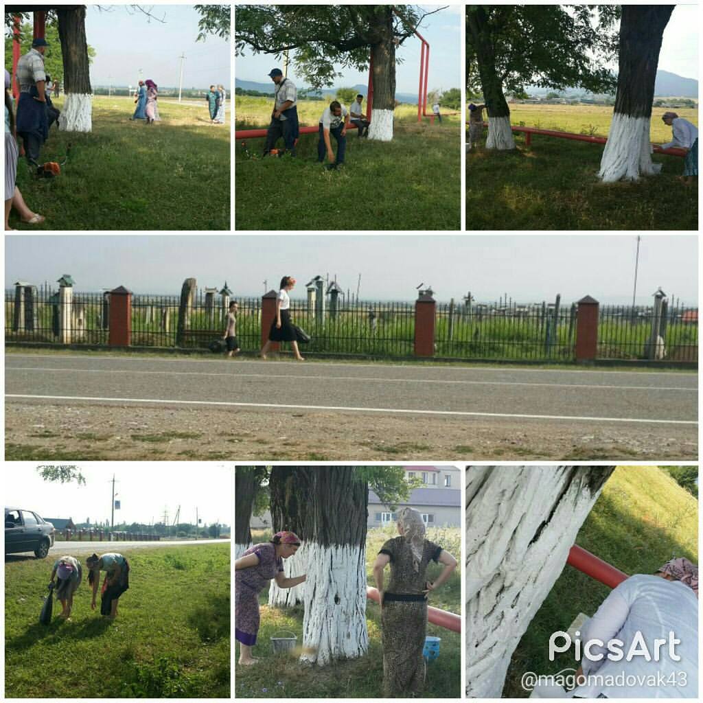 На субботнике в нашем селе.