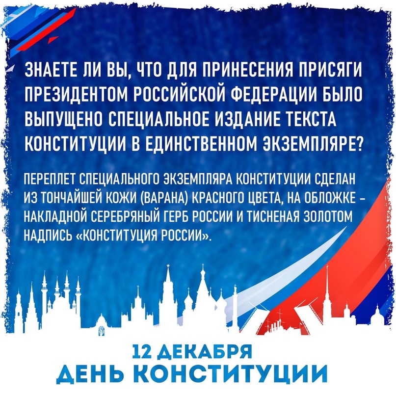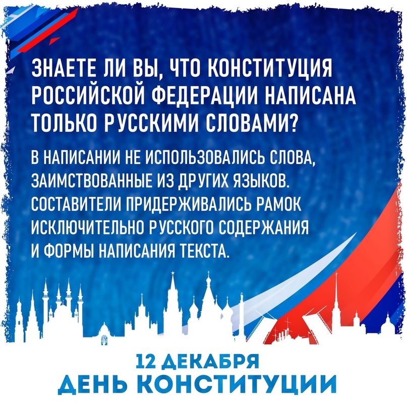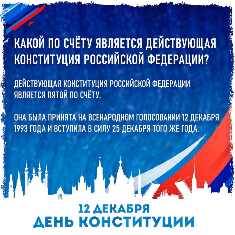 12.12.202312 декабря 2023 года в нашей стране отмечается значимый государственный праздник - День Конституции Российской Федерации. Конституция - главный нормативный правовой акт нашей страны. Конституция - основной закон государства - является ядром всей правовой системы России и определяет смысл и содержание других законов. 12 декабря 1993 года всенародным голосованием была принята Конституция Российской Федерации, которая изменила структуру высших органов государственной власти и определила федеративное устройство России.