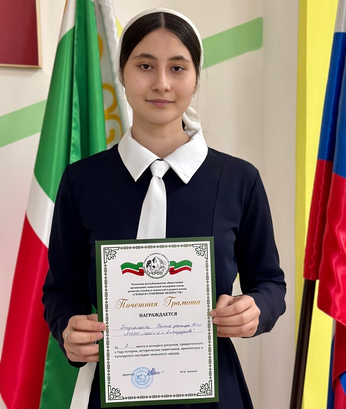 17.05.2024Чеченская республиканская обществення организация социальной поддержки семьи, развития семейных ценностей и родного языка «Семья и семейные ценности» организовала конкурс рисунков, приуроченныйк Году истории, исторических памятников, архитектуры и культурного наследия чеченского народа.Джукалаева Раяна заняла почетное 2 место в данном конкурсе.Дала т1аьхье беркате йойла!1