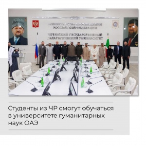 09.01.2024В ходе мероприятия обсуждались вопросы двустороннего взаимодействия в образовательной и научной областях, а также были определены перспективы дальнейшего сотрудничества.Особое внимание было уделено уже существующему взаимодействию между ЧГПУ и Университетом гуманитарных наук Мухаммеда бин Зайеда. Были достигнуты договоренности об обучении студентов ЧГПУ в Университете Зайеда.По условиям соглашения, принимающая сторона обеспечит студентов перелетом, обучением и проживанием. Кроме того, студентам будет предоставлена ежемесячная стипендия, что открывает новые возможности для обучения и культурного обмена.