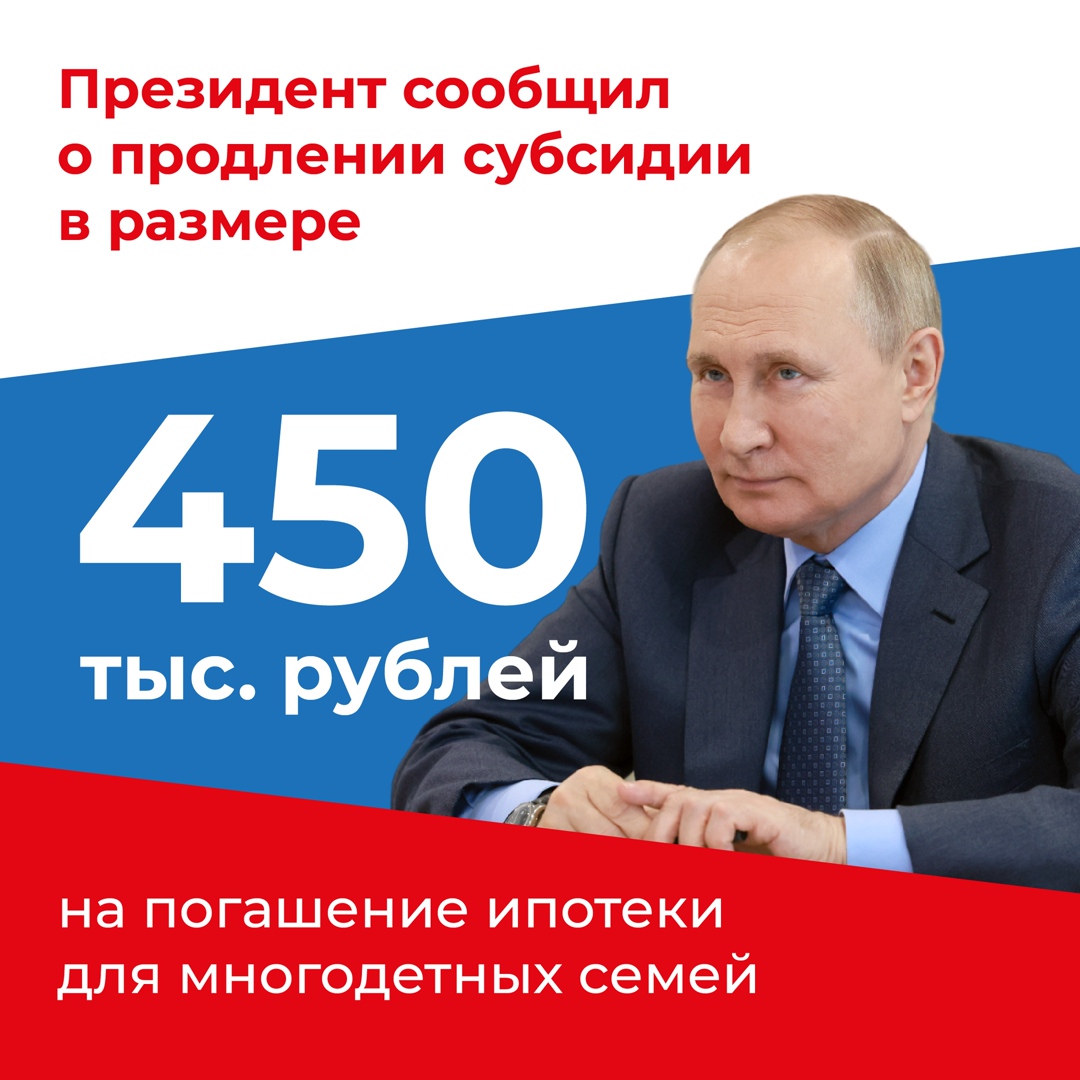 24.01.2024Одна из участниц встречи президента с победителями всероссийских семейных конкурсов отметила, что субсидия на погашение ипотеки важна и актуальна для многодетных семей. Глава государства с этим согласился и сообщил, что эффективную меру поддержки продлят.