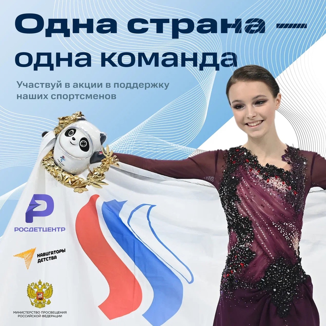 07.02.2024Участвуй во флешмобе ко Дню зимних видов спорта, который отмечается сегодня, 7 февраля.Акция «Одна страна – одна команда» запустил детский центр «Навигаторы детства». Флешмоб проводится с целью поддержки российских спортсменов, которые столкнулись с несправедливостью на международных соревнованиях.Что нужно сделать:собрать свою команду и записать видео с фразой «Одна страна – одна команда»или сделать фото со спортивной и государственной символикойсделать публикацию в соцсетях.#Команда_страны #НавигаторыДетства #Росдетцентр