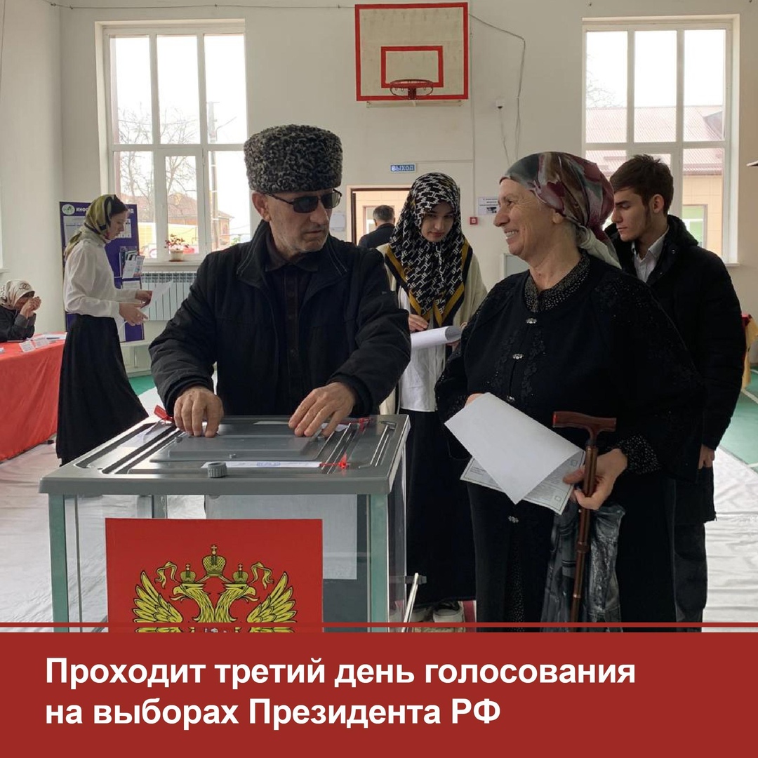 17.03.2024С 8:00 все избирательные участки Чеченской Республики вновь открыли свои двери для избирателей. Избирательные участки будут работать до 20:00.По информации ИК ЧР и Штаба общественного наблюдения, первые два дня голосования прошли без нарушений. Явка в Чечне традиционно высокая