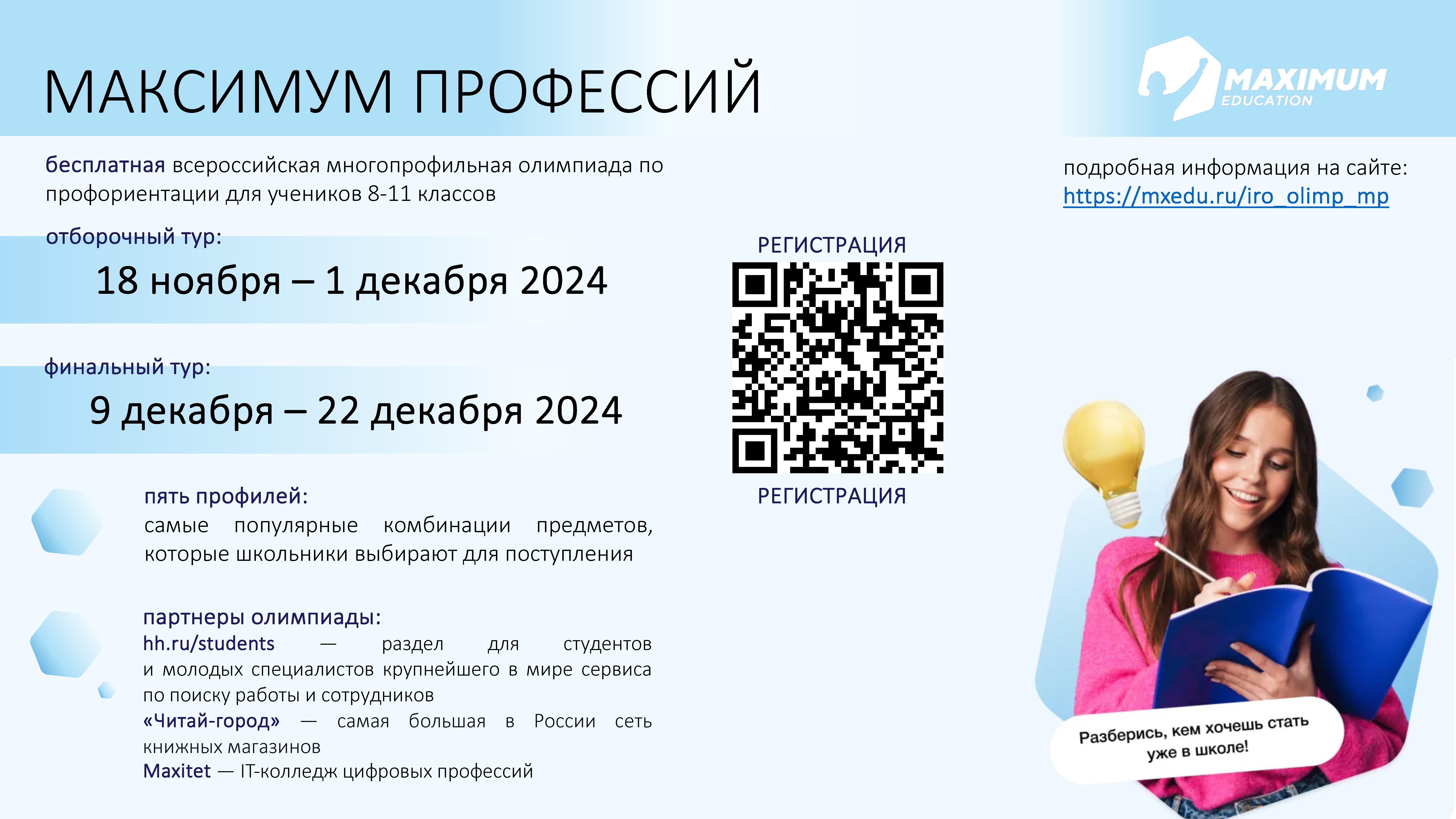 20.11.2024Бесплатная олимпиада по профориентации «Максимум профессий»