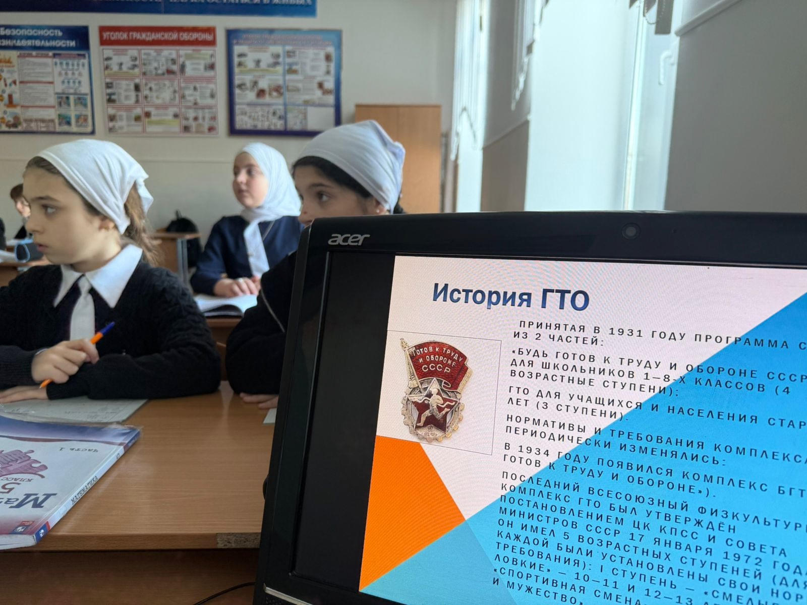 20.12.2024В МБОУ «СОШ №2 с. Алхазурово» прошла акция «Урок ГТО» В соответствии с планом мероприятий, направленных на пропаганду Всероссийского физкультурно-спортивного комплекса «Готов к труду и обороне» 20 декабря 2024 года в нашей школе прошла акция «Урок ГТО». Цель акции – мотивация детей и подростков к физической активности и приобщению к здоровому образу жизни, систематическим занятиям физической культурой и спортом, популяризация Всероссийского физкультурно-спортивного комплекса «Готов к труду и обороне». В ходе мероприятия ребята познакомились с презентацией по истории, становлению и развитию комплекса ГТО в нашей стране. Они узнали, что комплекс «ГТО» предназначен для повышения уровня физической подготовленности, самосовершенствования и поддержания здорового образа жизни. В заключение были сделаны выводы, для чего нужно стремиться молодежи 21 века к выполнению нормативов ГТО, к получению знаков отличия? Ответы получились разные: кто-то хочет достичь конкретного результата и проверить свою силу воли и настойчивость, кто-то привык быть всегда первым в учебе и спорте, кто-то заботится о своем здоровье.