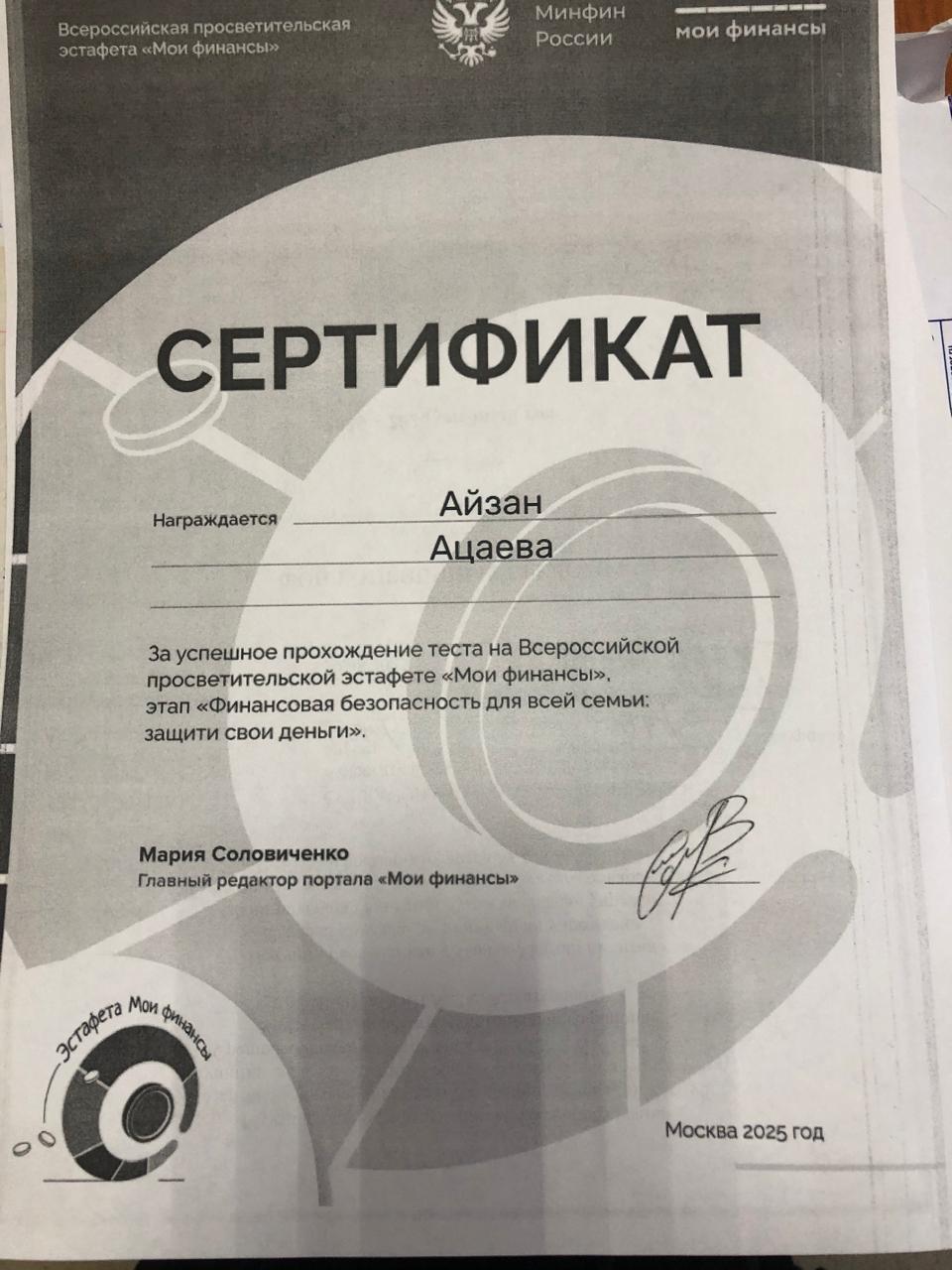 15 сентября 2025г. все педагоги прошли тест "Финансовая безопасность для всей семьи: защити свои деньги" и получили именные сертификаты.