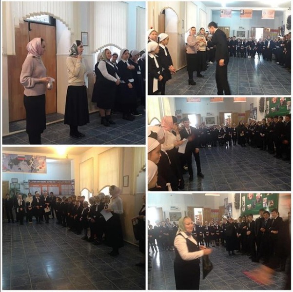 22.11.2018В рамках предметной недели химии, биологии и географии учитель химии и биологии Магомадова М. М. на линейках провела мини-викторины. Дети продемонстрировали свои знания в сфере данных наук, за что получали "сладкие призы"( что у нас уже вошло в традицию